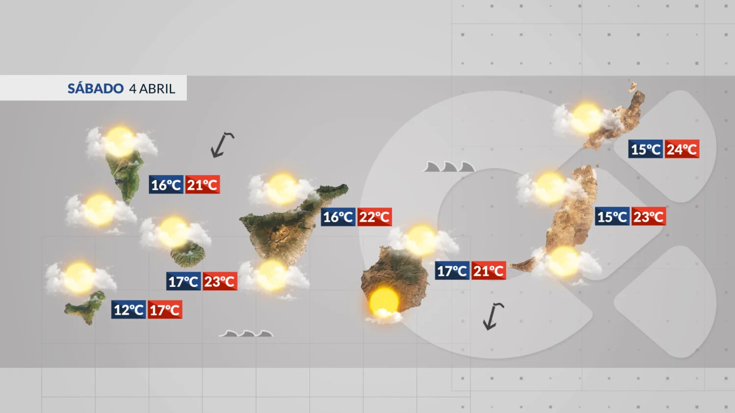 Maximum temperatures will drop slightly, most noticeably on La Palma, La Gomera, Tenerife, and Gran Canaria. Minimums will see a slight dip on the peaks of La Palma and Tenerife. Elsewhere, temperatures remain typical for the season.
